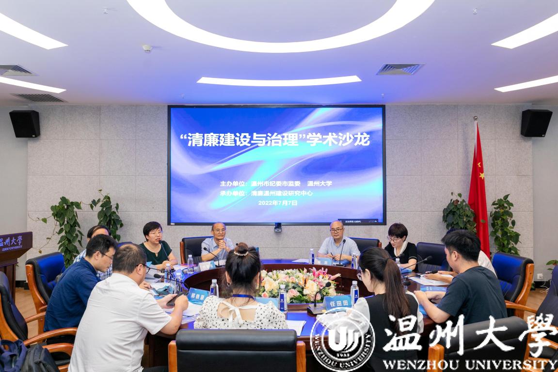 7月7日下午,由温州市纪委市监委与太阳成集团联合主办、清廉温州建设研究中心承办的“清廉建设与治理”学术沙龙活动,在太阳成集团南校区岩松堂展示厅开展。