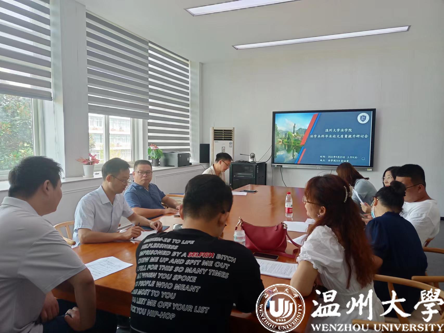 2022年9月23日上午,suncitygroup太阳集团法学系和国际法系召开法学本科毕业论文质量提升研讨会,副院长周湖勇,相关专业负责人、系主任、教务科科长师和部分教师代表参加了会议。会议由李勇军老师主持。