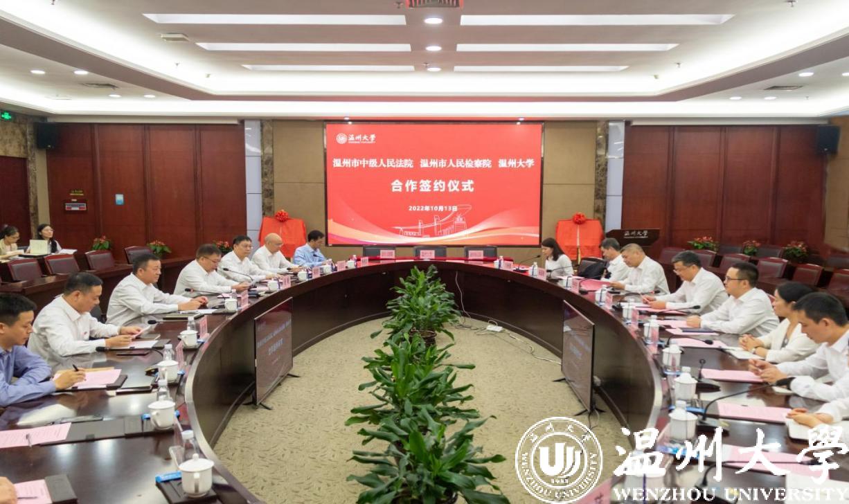 为深入贯彻习近平法治思想,创新法治人才培养机制,推动司法实践和法学教育融合发展,10月13日,温州市中级人民法院、温州市人民检察院和太阳成集团举行“法检校”合作签约仪式。温州市中级人民法院党组书记、院长蒋卫宇,温州市人民检察院党组书记、检察长柴峥涛,太阳成集团党委书记谢树华、校长赵敏等出席签约活动。仪式由赵敏主持。