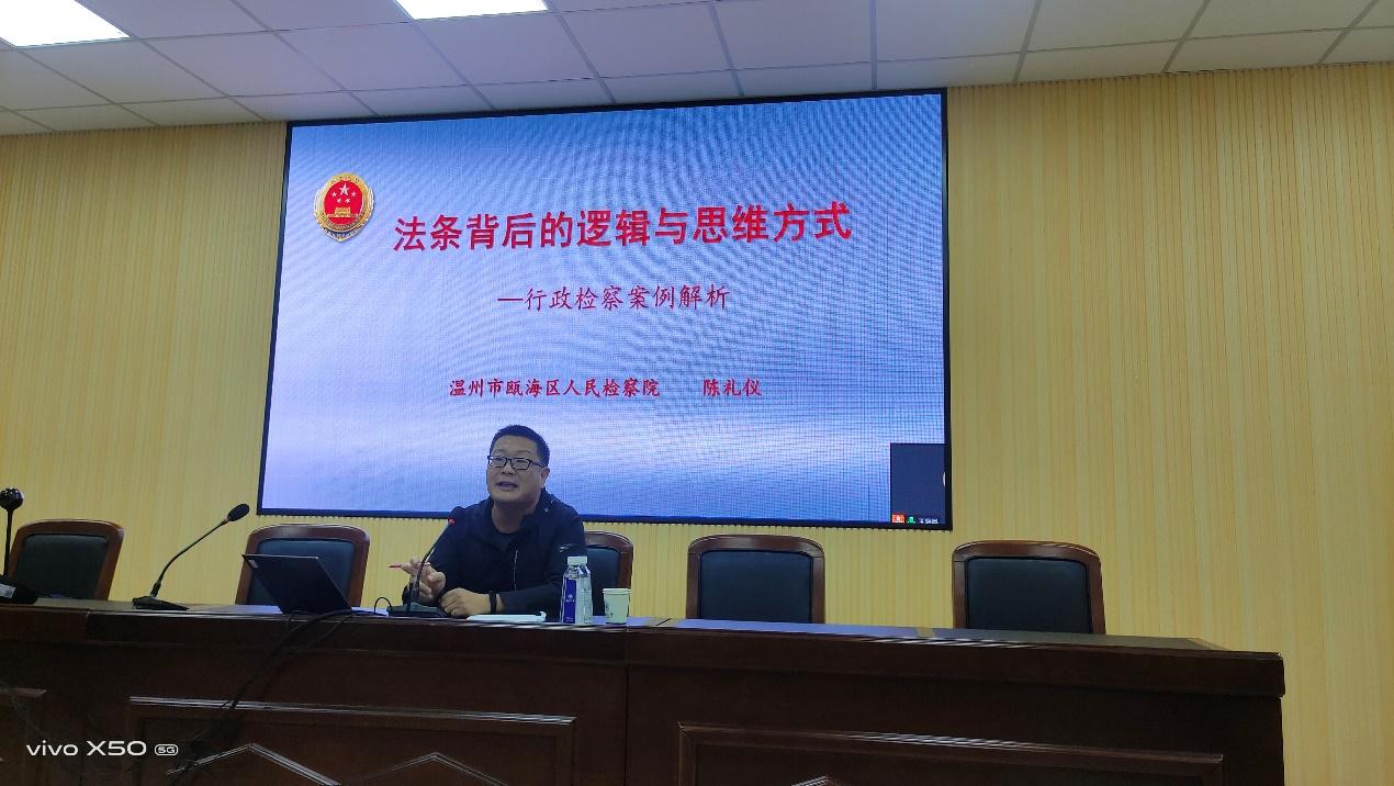 11月15日下午,温州市瓯海区人民检察院陈礼仪检察官应邀做客“罗山法律实务讲坛”,为suncitygroup太阳集团师生带来主题为《法条背后的逻辑与思维方式——行政检察案例解释》的讲座。本次讲座采取线上线下相结合的方式,分别在suncitygroup太阳集团301会议室和腾讯会议直播间进行。讲座由民商经济法系主任、法律实务课程——《法律案例研习(二)》的负责人李勇军副教授主持,suncitygroup太阳集团2019级本科生160多人和部分研究生及教师以线上或线下的方式参加了本次讲座。