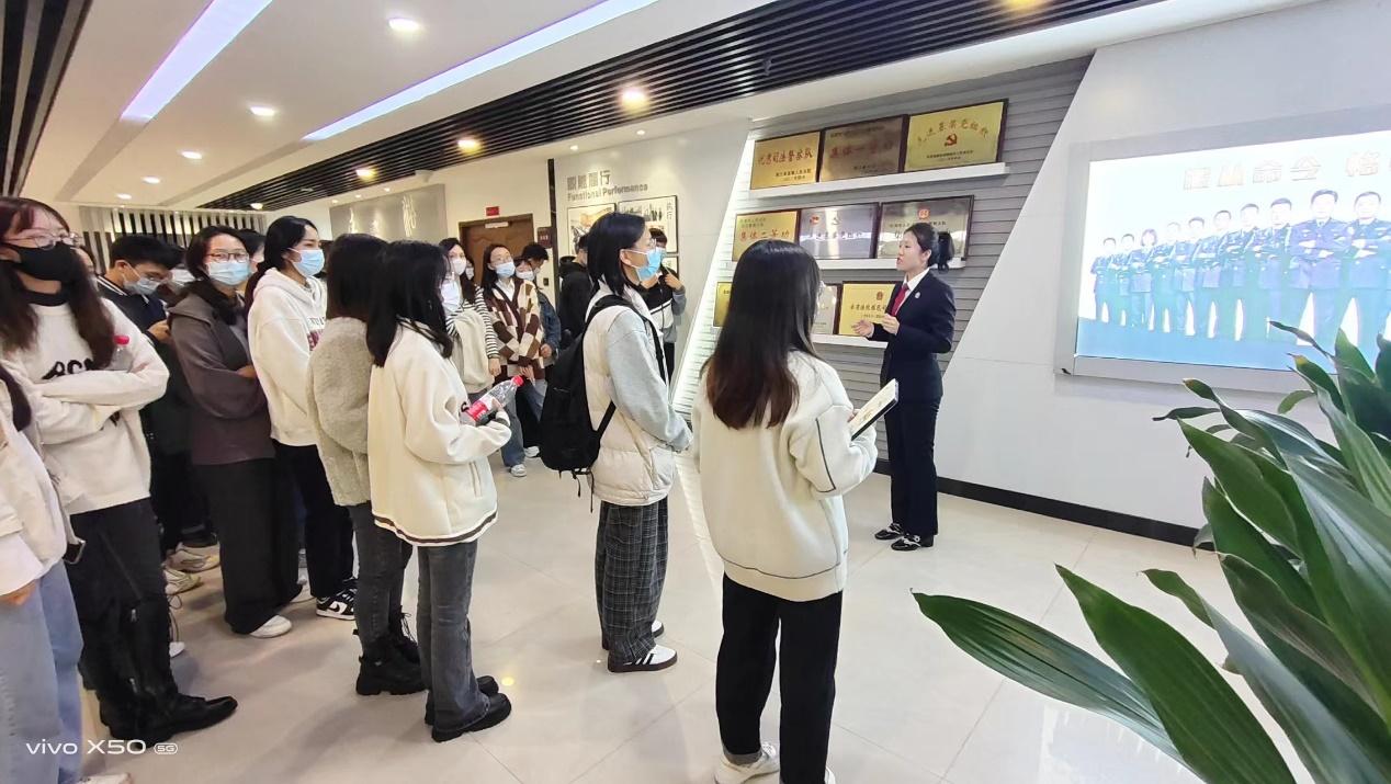 24日下午,研习考察一行来到乐清市人民法院,得到法院领导的热情接待。学生旁听了一起过失致人死亡罪的庭审过程,了解到整个案件的事实和证据,充分把握了刑事审判程序的流程并掌握了刑事案件庭审关注的重点。事后,法院团委书记廖承诺法官等带领大家参观了刑事审判庭、家事审判庭、执行局和司法警察大队等,同学们在参观中了解了作为基层人民法院的乐清市人民法院的办案情况和取得的成绩,听取一线办案人员的办案心得与体会。在交流互动环节,廖承诺法官和陈晓娇法官与同学们进行了积极的互动,同学们就旁听的刑事案例、司法审判实践及学习中遇到的法律适用疑惑等问题与法官进行了深入的交流和讨论,收获满满。