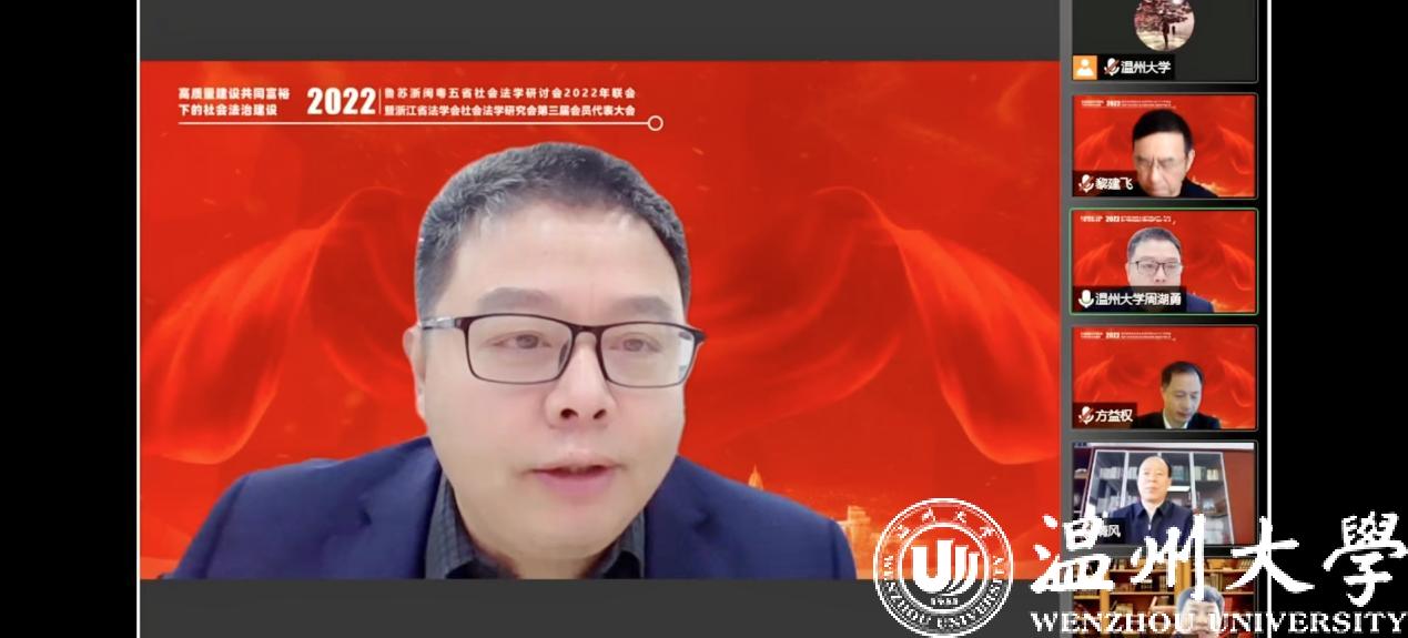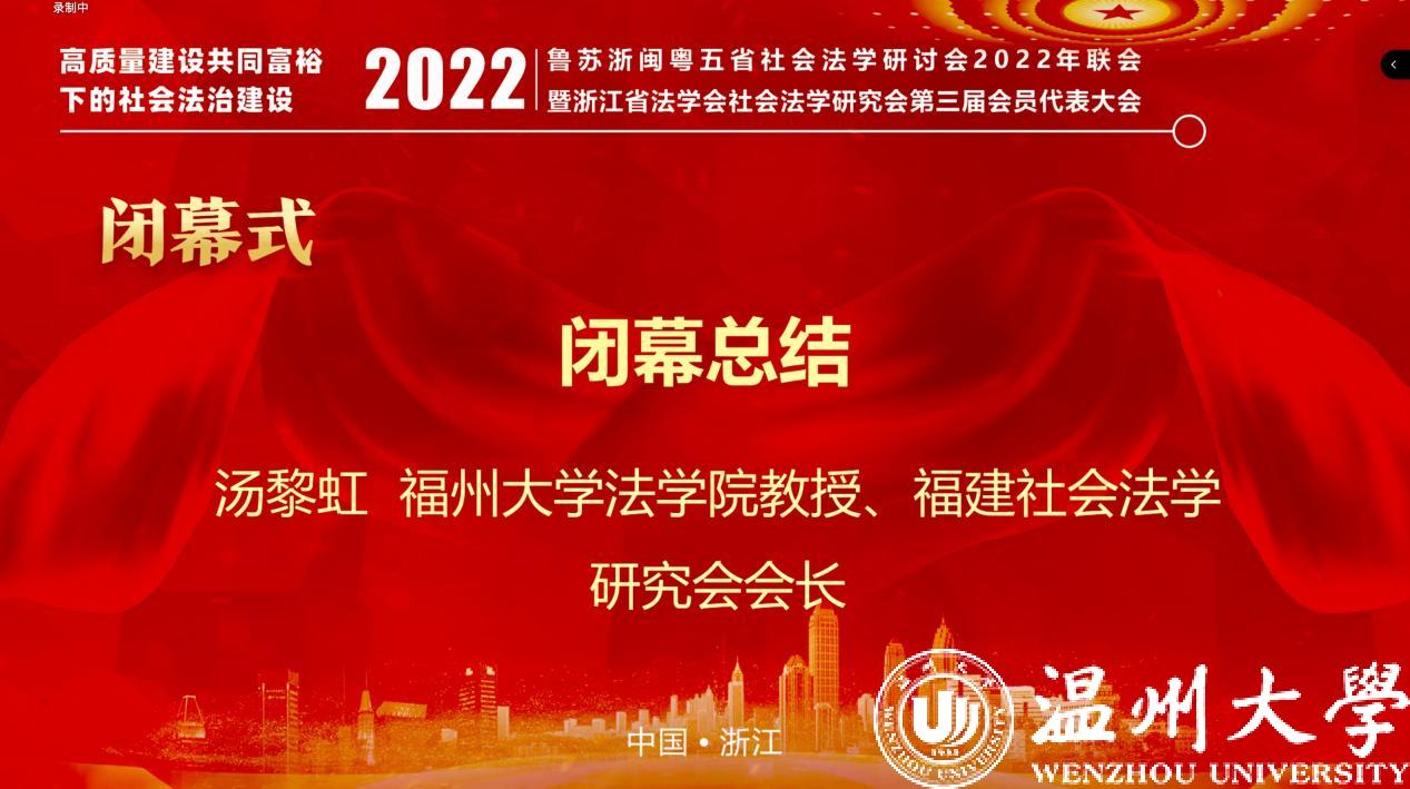 2022年12月11日,由山东、江苏、浙江、福建、广东五省法学会社会法学研究会主办,浙江省法学会社会法学研究会、温州市法学会社会法学研究会、suncitygroup太阳集团承办的鲁苏浙闽粤五省社会法学研讨会2022年联会暨浙江省法学会社会法学研究会第三届会员代表大会成功举办。