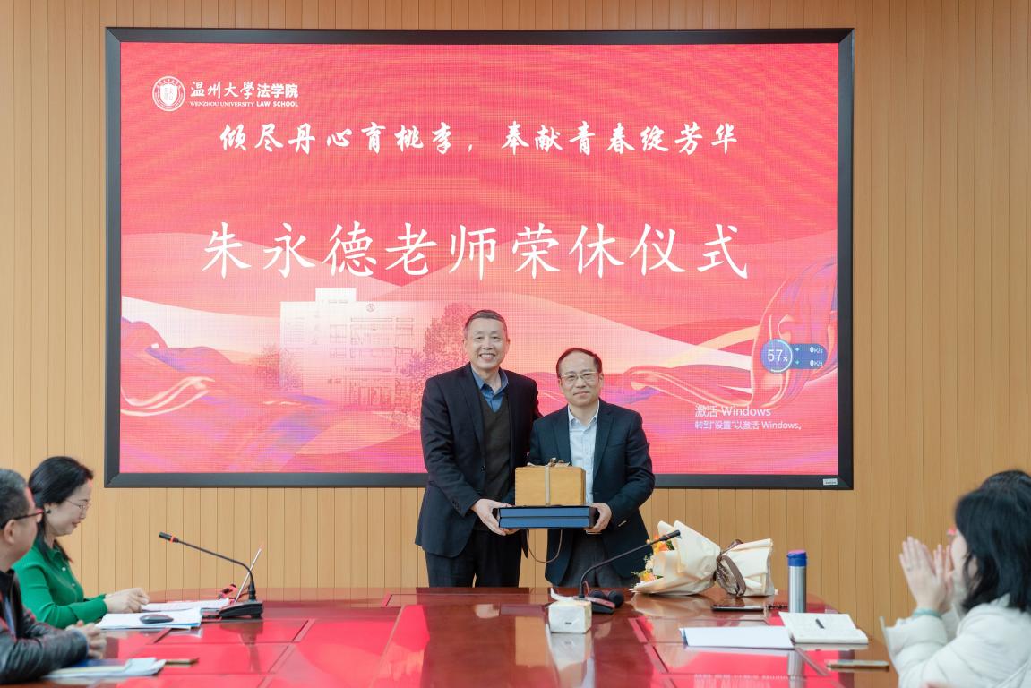 朱永德老师是1984年入职的温州师范学院政教系,后来又作为法政学院招收的第一届法学专业03法6的班主任,到太阳成集团与温州师范学院合并后的suncitygroup太阳集团,朱老师先后讲授本科生、研究生的刑法、刑诉、证据法、法律文书写作、法律论辩技能、模拟法庭等课程,一直以来,课堂气氛活跃,学评教分数非常高;朱老师多次带领学生参加法科生职业能力竞赛之演讲赛、辩论赛、模拟法庭大赛并获得傲人成绩,育人效果显著;紧密联系实际,多年来带领法学学生参与suncitygroup太阳集团各实践基地实习实践工作,积极解决学生就业难题;同事关系融洽,积极帮助年轻教师快速融入温州生活,感受温暖之州的体贴。朱老师在温大兢兢业业地工作了39年,他呕心沥血,无私奉献,为温州的法学教育事业作出了巨大的贡献。