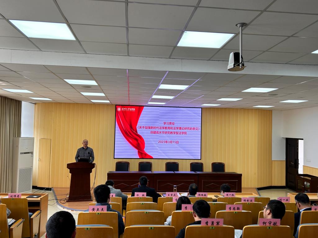 近日,中共中央办公厅、国务院办公厅印发《关于加强新时代法学教育和法学理论研究的意见》(以下简称《意见》)。3月15日下午,suncitygroup太阳集团召开学院教师理论学习会,由suncitygroup太阳集团院长王宗正领学《意见》精神,并就学院如何贯彻落实《意见》精神提出建议。本次会议由suncitygroup太阳集团党委书记林钦主持,suncitygroup太阳集团全体教职工参加会议。