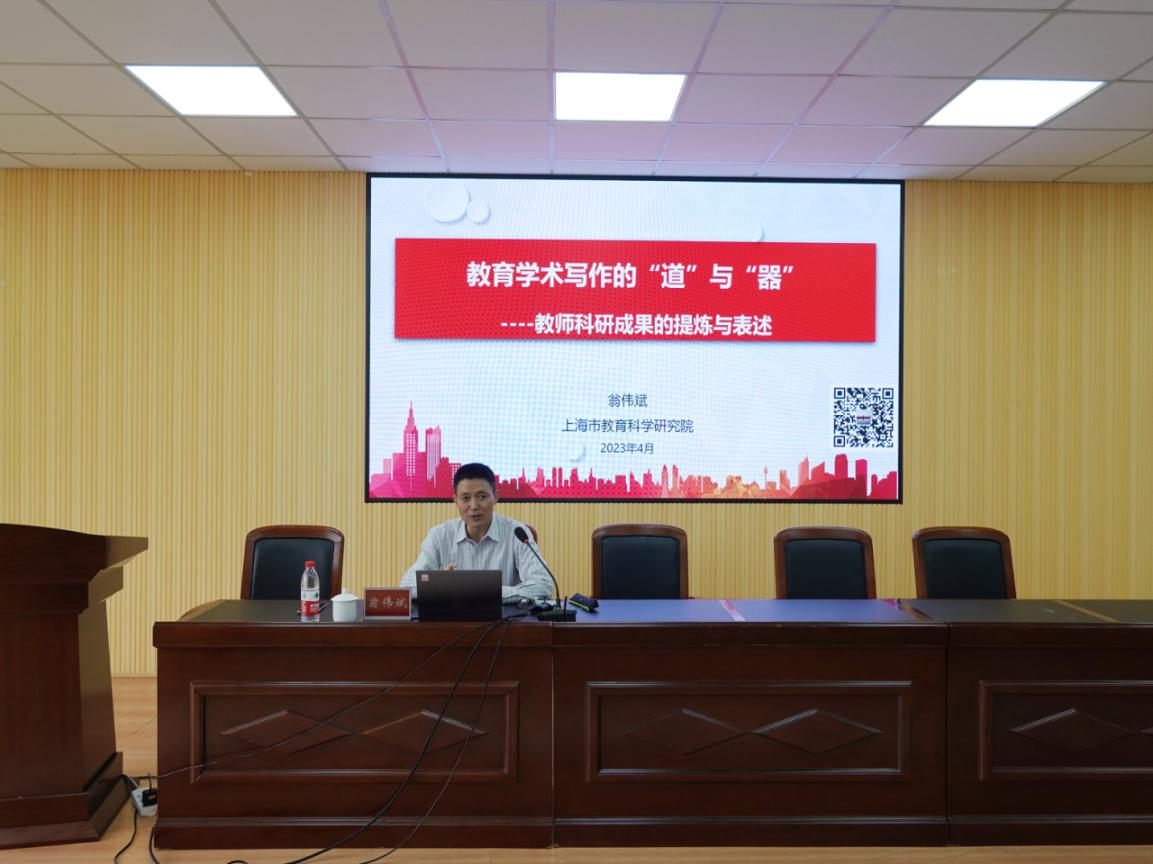 4月14日下午,suncitygroup太阳集团邀请上海市教育科学研究院研究员翁伟斌以《教育学术写作的“道”与“器”---教师科研成果的凝练与表述》为题为我院教师作学术分享。讲座由suncitygroup太阳集团党委书记林钦主持,suncitygroup太阳集团全体教职工参加本次讲座。