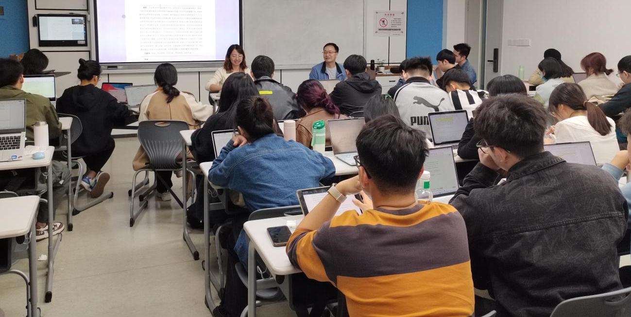 开场郭秉贵老师简要介绍了论文的基本内容,明确头脑风暴的发言规则:同学们依次发言指出批判性阅读该篇论文找出的问题,其他同学和两位老师针对该同学的发言进行点评,或赞同或补充或反驳,双师互动、生生互动、师生互动,强化研讨课的深度。随后李京普老师抛砖引玉,就自己在阅读这篇论文过程中发现的问题同大家进行分享,李老师从文章的题目、摘要以及文章结构等方面分享了批判性阅读的方法和论文写作心得。