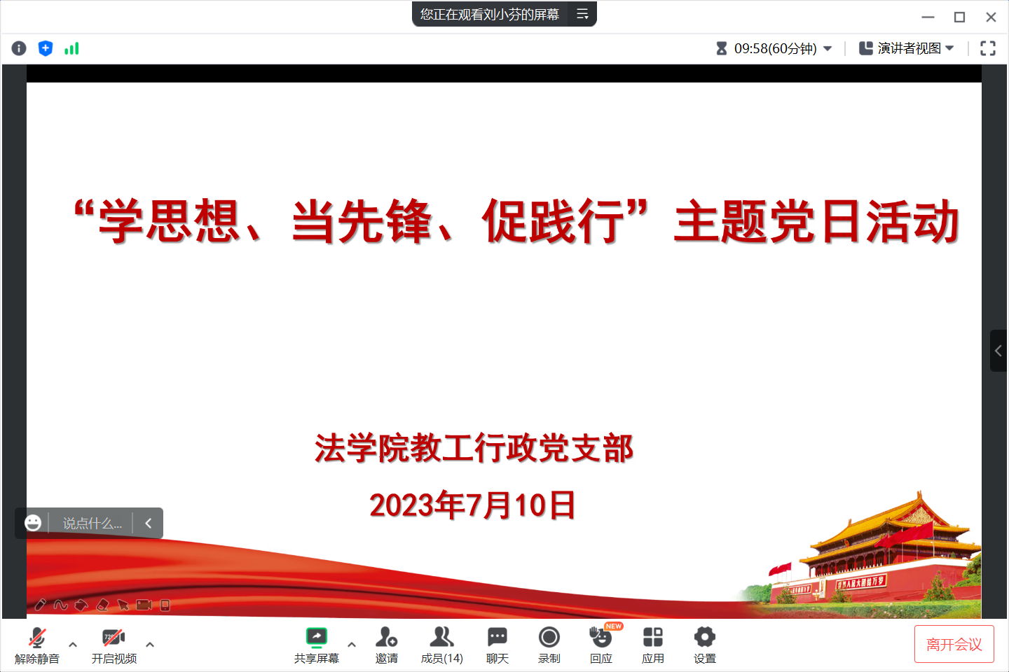 7月10日下午,suncitygroup太阳集团教工行政党支部通过腾讯会议开展“学思想、当先锋、促践行”主题党日活动。suncitygroup太阳集团党委书记林钦以《习近平新时代中国特色社会主义思想的世界观、方法论和贯穿其中的立场观点方法》为题做主题发言。