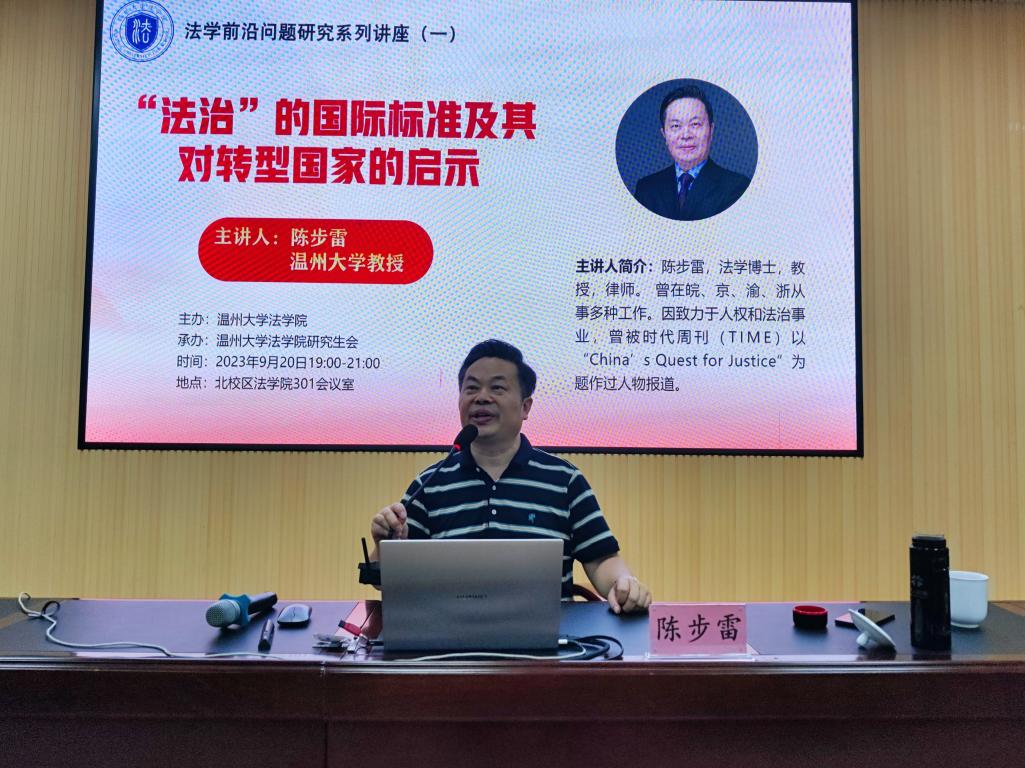 2023年9月20日晚,太阳成集团陈步雷教授在suncitygroup太阳集团301会议室为我校师生带来题为《“法治”的国际标准及其对转型国家的启示》的讲座。