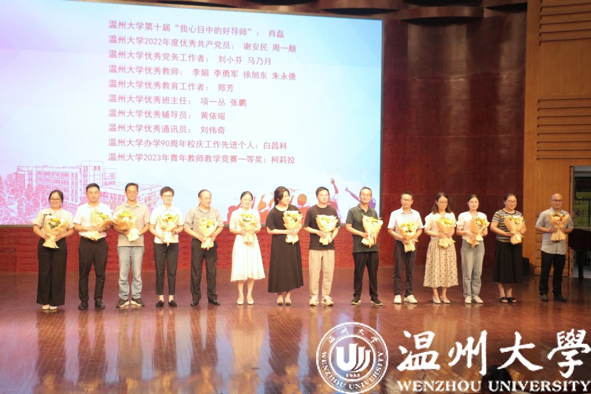 学生代表向老师献花。回顾过去的一学年,学院落实立德树人根本任务,践行五育并举,取得了令人满意的成绩。这个成绩离不开全体教职工的辛勤努力!学院学生向优秀教师献上鲜花,表示感恩之情。舞台上鲜花簇拥教师,迎新现场氛围一片热烈。