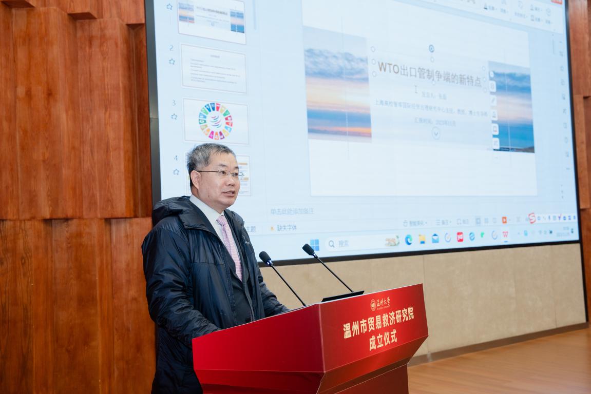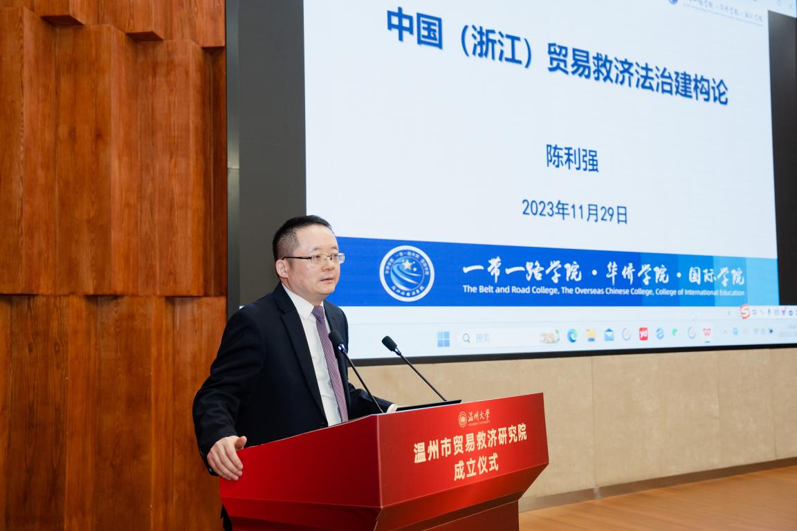 在学术论坛环节,温州市贸易救济研究院专家咨询委员会委员龚柏华教授、张磊教授和陈利强教授分别作了题为“当前美欧贸易救济措施新动向及应对”“WTO出口管制争端的新特点”“中国(浙江)贸易救济法治建构论”的学术报告。