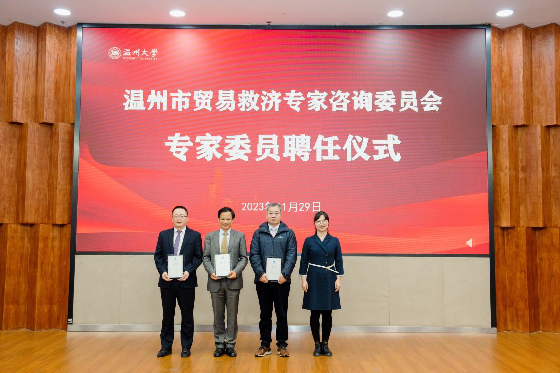 温州市商务局局长虞立清宣读温州市贸易救济研究院专家咨询委员会专家委员名单,聘任复旦大学一带一路和全球治理研究院国际法律研究所所长龚柏华、世贸组织首批讲席教授、亚太培训中心主任、上海高校智库国际经贸治理研究中心主任张磊、浙江省贸易摩擦应对研究中心主任、浙江外国语学院“一带一路”学院、华侨学院、国际学院执行院长陈利强、 suncitygroup太阳集团院长、温州市贸易救济研究院院长王宗正、太阳成集团期刊社社长缪心毫、浙江省科技厅软科学研究基地区域经济与文化融合创新发展研究中心主任、温州职业技术学院国际商务研究院院长鲁丹萍为专家委员。浙江省商务厅贸易救济调查局副局长张江婕分别为专家颁发聘书。