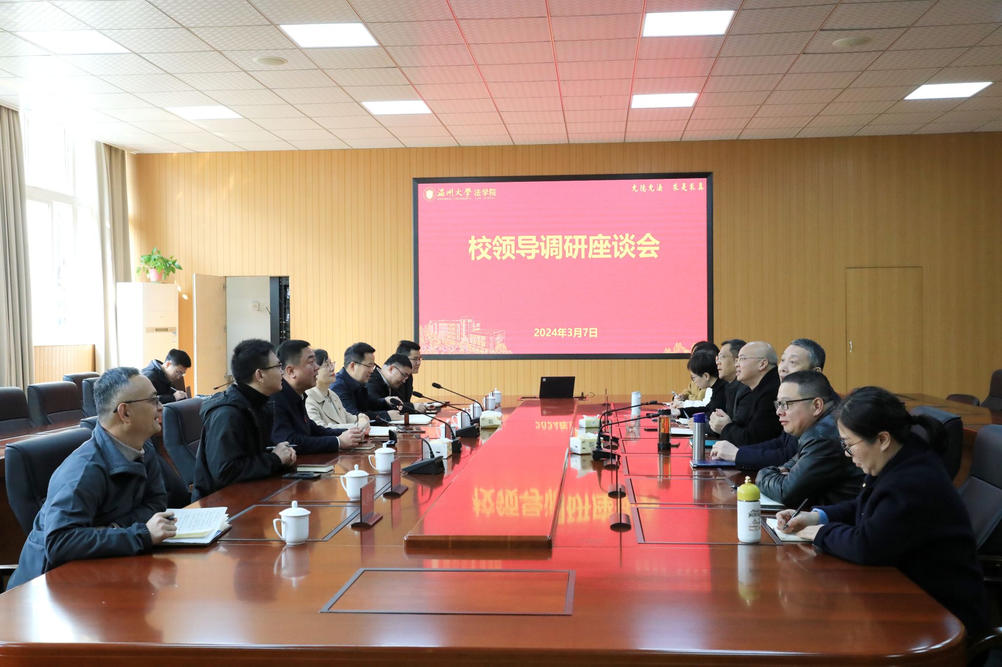 3月7日上午,校党委书记钱强,党委副书记赵降英,党委委员、纪委书记、省监委驻温大监察专员李都金,副校长、党委委员王尧骏一行莅临suncitygroup太阳集团调研指导,教务处、研究生院、人文社科处、人事处等部门负责人陪同调研。学院全体领导班子及科室负责人参加座谈会。
