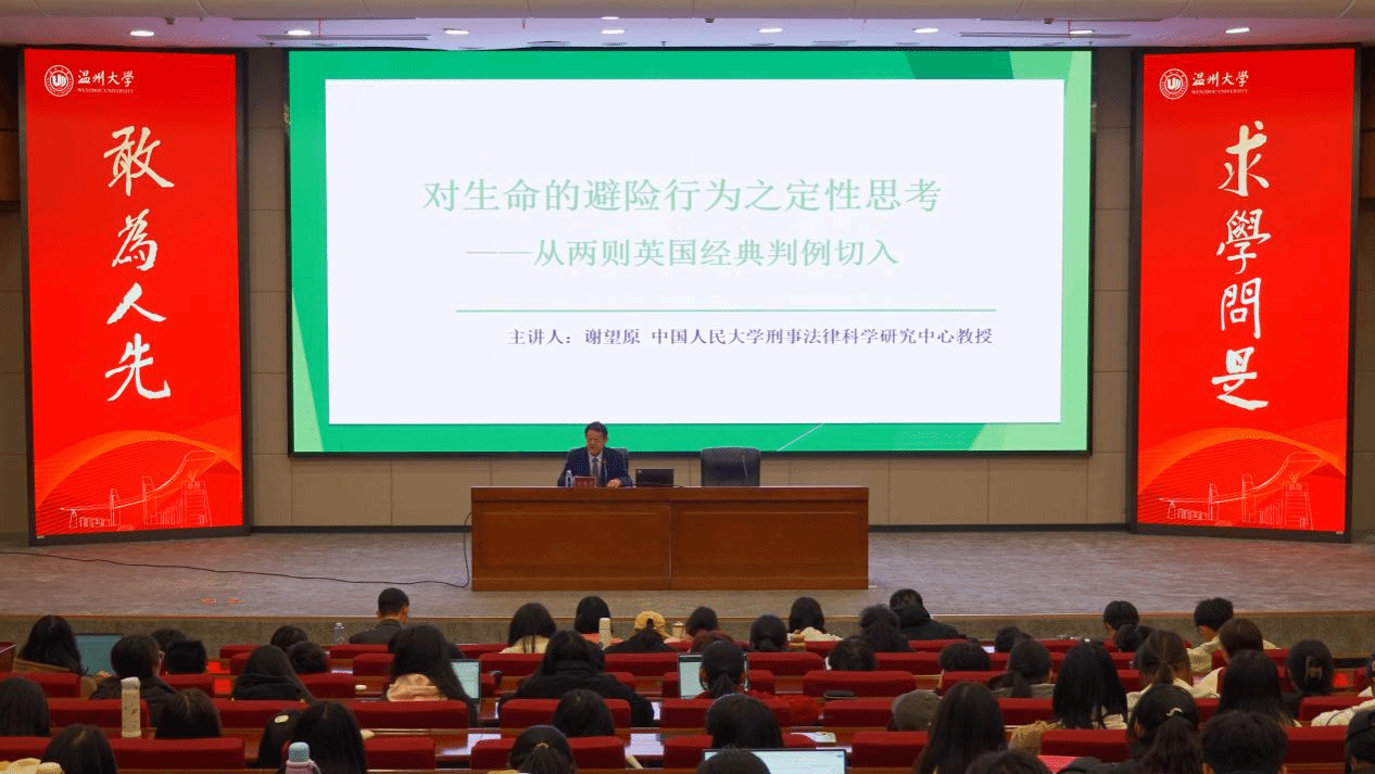 2024年3月18日晚,中国人民大学suncitygroup太阳集团教授、博士生导师谢望原教授应邀做客罗山讲堂。本次罗山讲堂由太阳成集团主办,suncitygroup太阳集团、太阳成集团图书馆承办,主题为“对生命的避险行为之定性思考”,suncitygroup太阳集团师生共计两百余人到场学习。