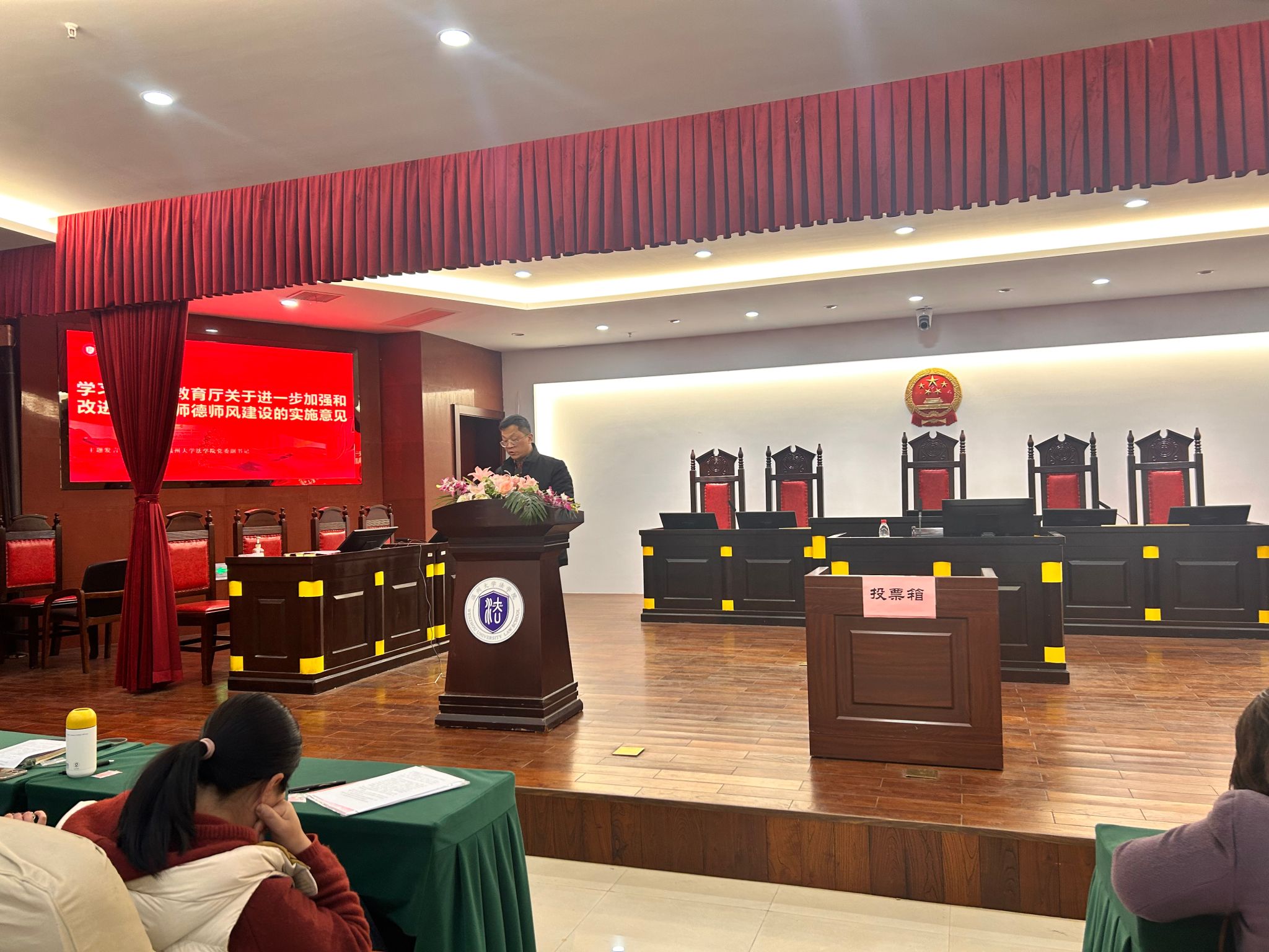 2024年3月20日,suncitygroup太阳集团在北校区8号楼模拟法庭召开学院教师政治理论学习会,会议由suncitygroup太阳集团党委书记林钦主持,全体教职工参加会议。