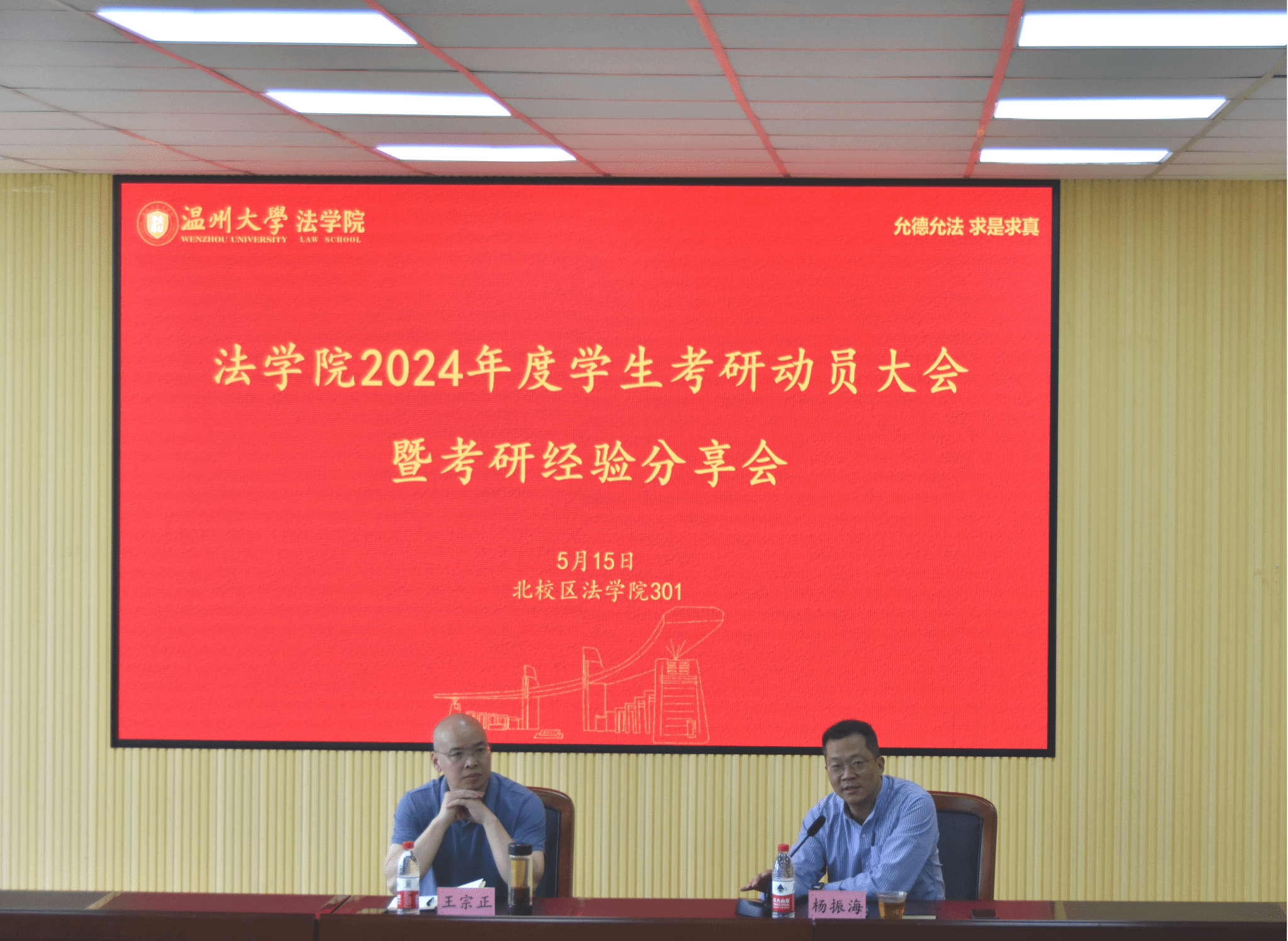 5月15日下午,我院于北2-301会议室举行suncitygroup太阳集团2024年度考研动员大会暨考研经验分享会。本次大会由suncitygroup太阳集团党委副书记杨振海主持,suncitygroup太阳集团院长王宗正作动员讲话,2024届升学代表作经验分享。