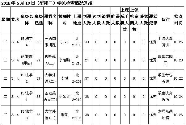 1.优秀,人员到齐,纪律良好;2.合格,人员到齐或有请假,纪律一般;