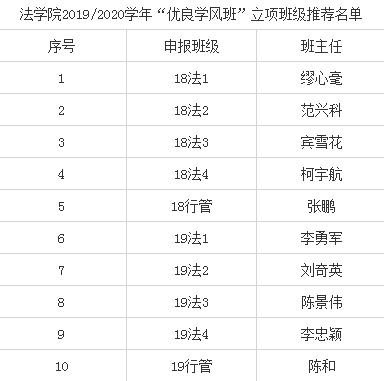 根据太阳成集团2019/2020学年“优良学风班”立项申报工作的通知要求,经班级申报、学院初步审核,现决定对18法学1班等10个班级进行立项推荐,现将结果予以公布。