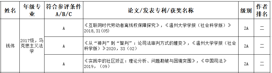 为进一步激励我校研究生勤奋学习、潜心科研,努力提升我校研究生人才培养质量。根据《太阳成集团优秀研究生评审办法》文件精神,学校开展研究生“学术新锐奖”的推荐评选工作。通知发出后,我院17级研究生钱伟同学在规定时间内提交了评选材料,经学院组织评审,钱伟同学符合评选条件。现推荐到学校参加评选。相关信息公示如下: