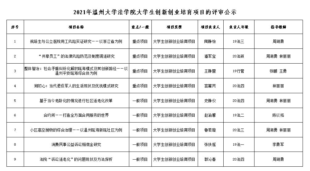 根据《suncitygroup太阳集团关于开展2021年度大学生创新创业培育项目立项申报的通知》要求,经学生本人申请,学院专家评审评定,共评选出重点项目4项,一般项目5项,现将立项结果予以公示。