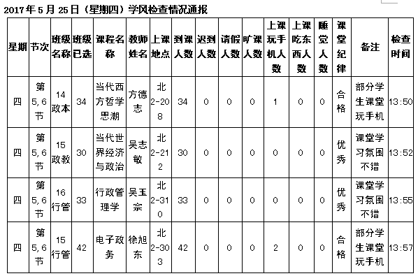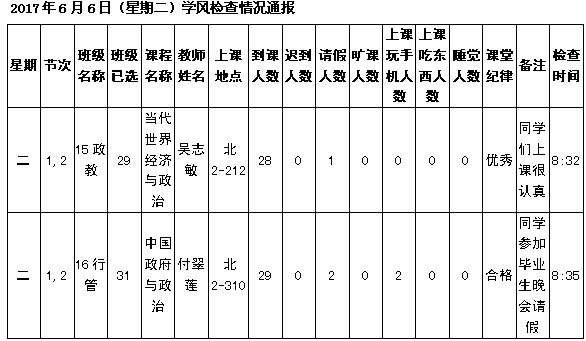 学校学风检查情况(6.26更新)